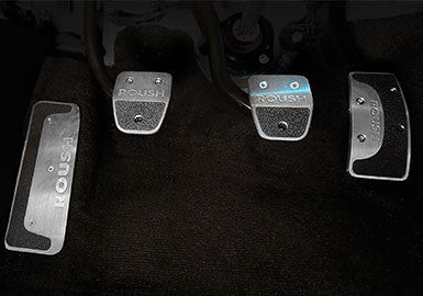 Your Mustang has a Manual transmission, you heal-toe like your last name was Andretti, why should boring, stock pedals be the platform for your fancy footwork? ROUSH Performance Pedal Kits are made of high quality CNC machined billet aluminum with black grip-surface accents that will keep your feet from slipping.